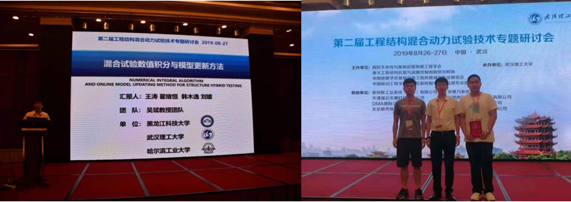 王涛与研究生刘家秀、郑欢参加第二届工程结构混合动力试验技术专题研讨会, 2019年8月26-27日,中国,武汉,进行了学术报告;指导研究生刘家秀,郑欢,周天楠获第二届工程结构混合动力试验技术专题研讨会学生竞赛“拟动力混合试验组”三等奖。 |