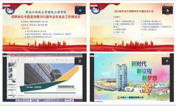 为充分利用好毕业生秋季就业最佳时期,促进2023届毕业生顺利就业、高质量就业,9月28日晚18点30分,leyu乐鱼在线登录入口组织召开了用人单位招聘专场宣讲暨毕业生就业工作推进大会。会议采取线上形式、分两个阶段进行,会议由学院副处级辅导员展跃主持,中铁十四局集团有限公司等8家用人单位负责招聘的领导和工作人员、学院党政领导、教研室主任、毕业班班主任、辅导员和全体23届毕业生参加了会议。