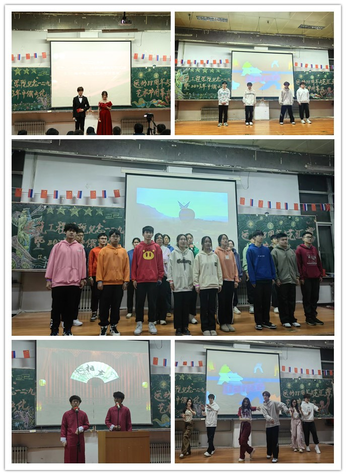本次晚会采用汉语、俄语双语主持,共分为“栉风沐雨”、“奋楫前行”、“逐梦未来”三个篇章。晚会在舞蹈表演《Free Soul》中拉开序幕,舞者们动感十足,彰显青春活力,瞬间点燃全场;语言类节目《我比你强》、《如此合适》、《情报风云》、《梦幻家园》、《智取生辰纲》营造轻松愉悦氛围,作品贴近校园生活,充分体现了学生们的创作才能,场下欢呼声、笑声、掌声此起彼伏;歌曲《我相信》、《阶梯》、《海阔天空》、《喀秋莎》在歌手们的倾情演绎下,带领观众沉浸式感受中俄文化交融,展现了建工学子朝气蓬勃的精神风貌;舞蹈《若梦》兼具传统美和力量感,体现出中国古典舞蹈文化之美;魔术《钞票入柠檬》为观众带来了一场奇幻的视觉盛宴,引得现场阵阵惊呼;光影剧《红色记忆》带领全场观众一同穿越时空,追寻先辈足迹,感悟红色情怀。