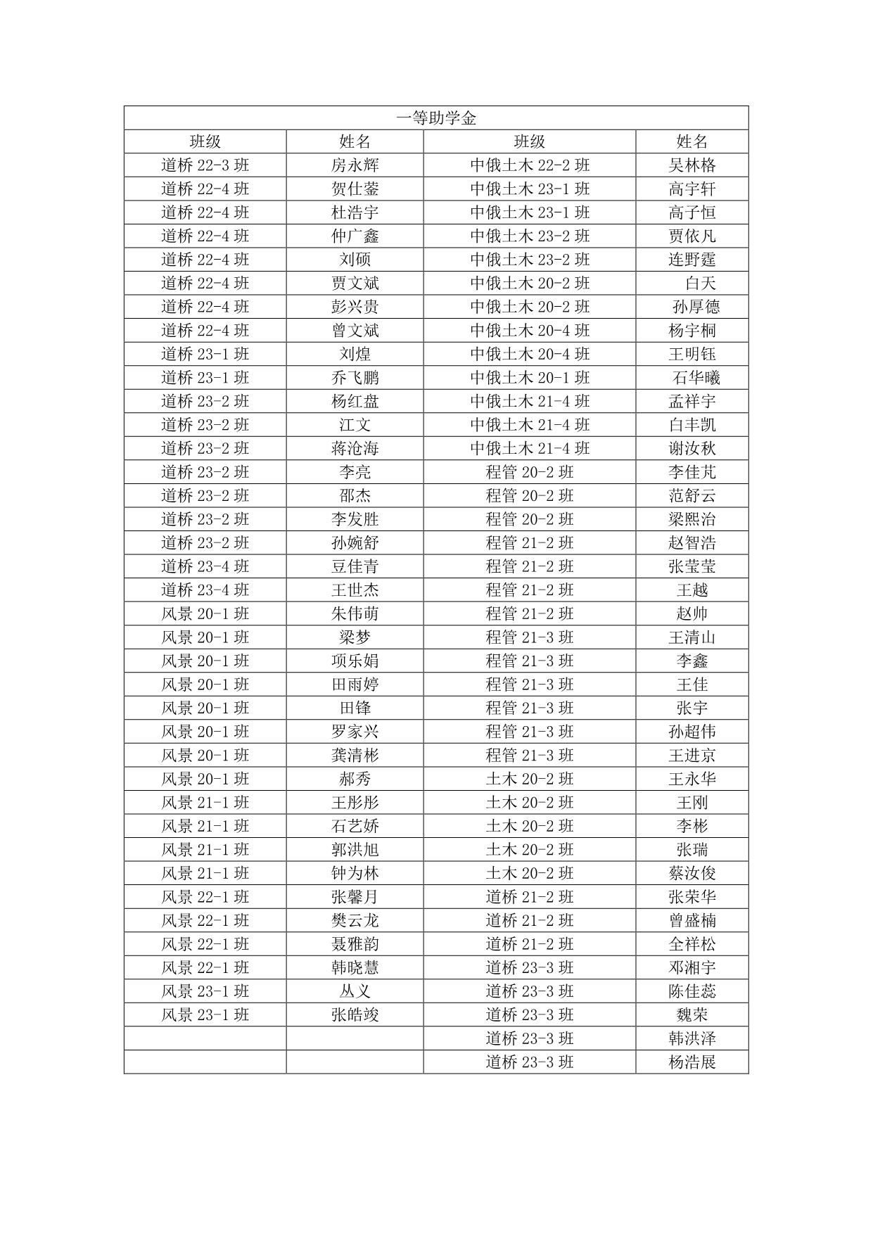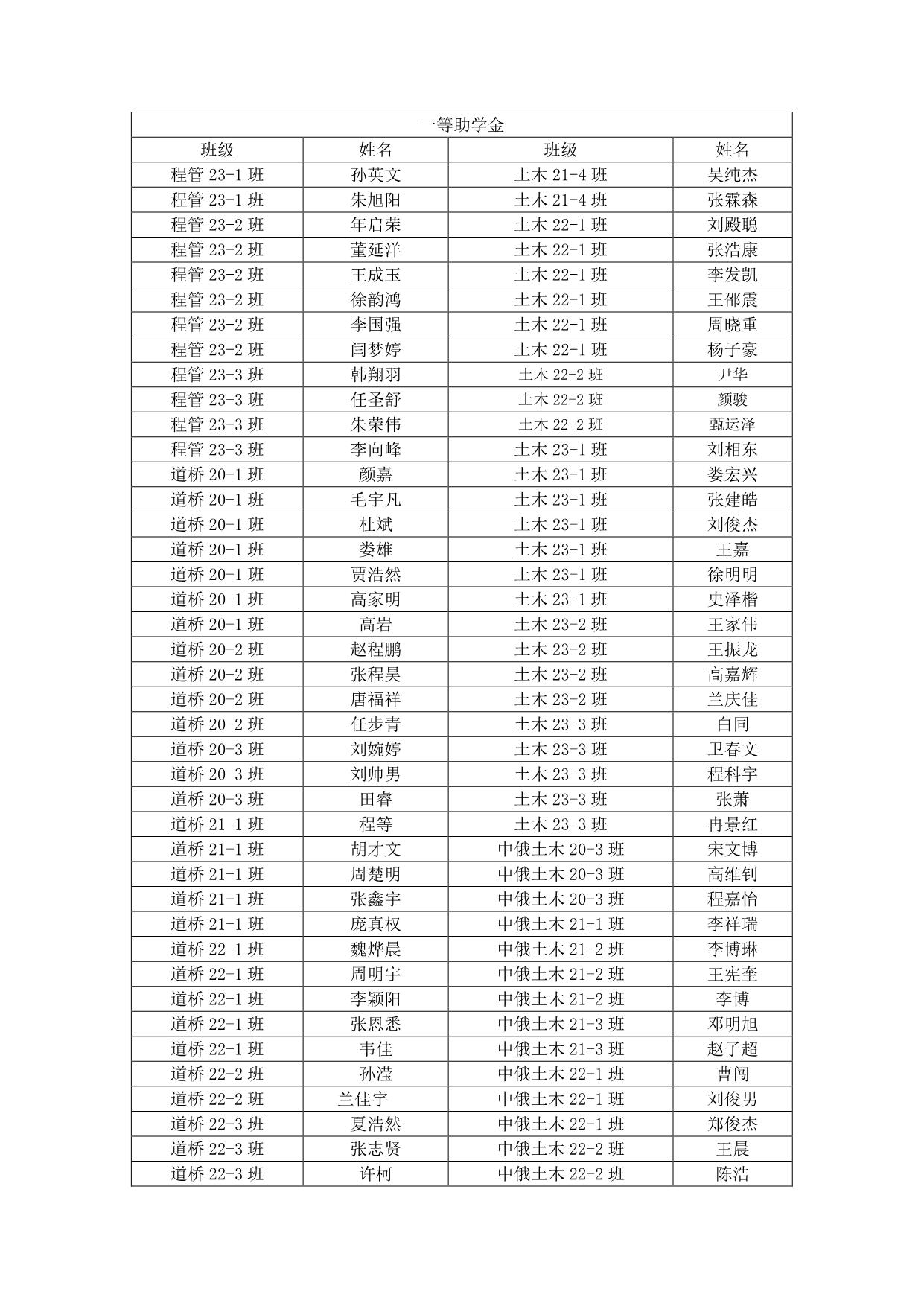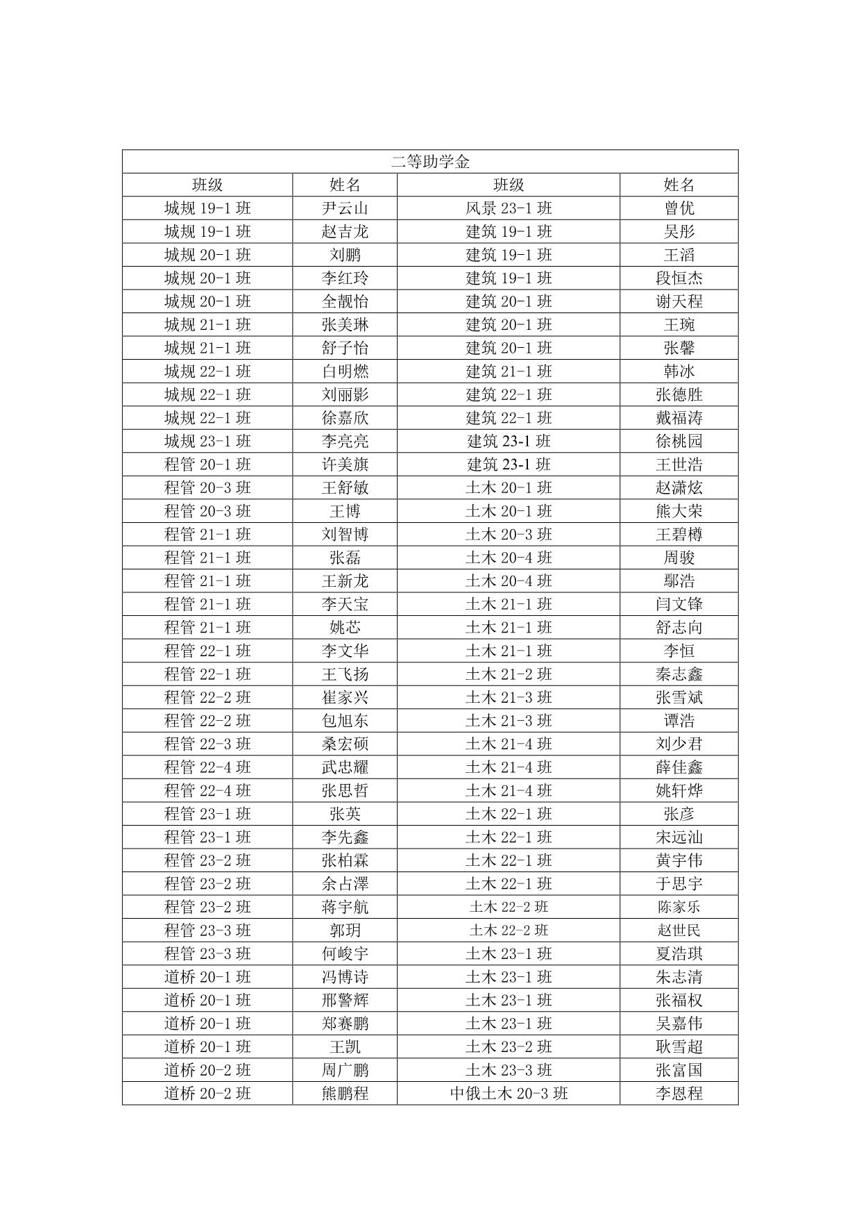 建工学院 2023-2024 学年国家助学金拟推荐名单公示