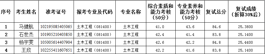 leyu乐鱼在线登录入口2025年硕士研究生招生考试(土木工程专业)第一次调剂复试成绩