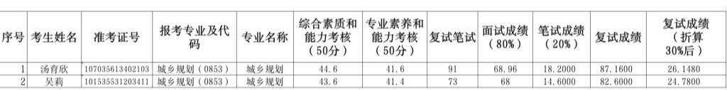 leyu乐鱼在线登录入口2025年硕士研究生招生考试(城乡规划0853)第三次调剂复试成绩